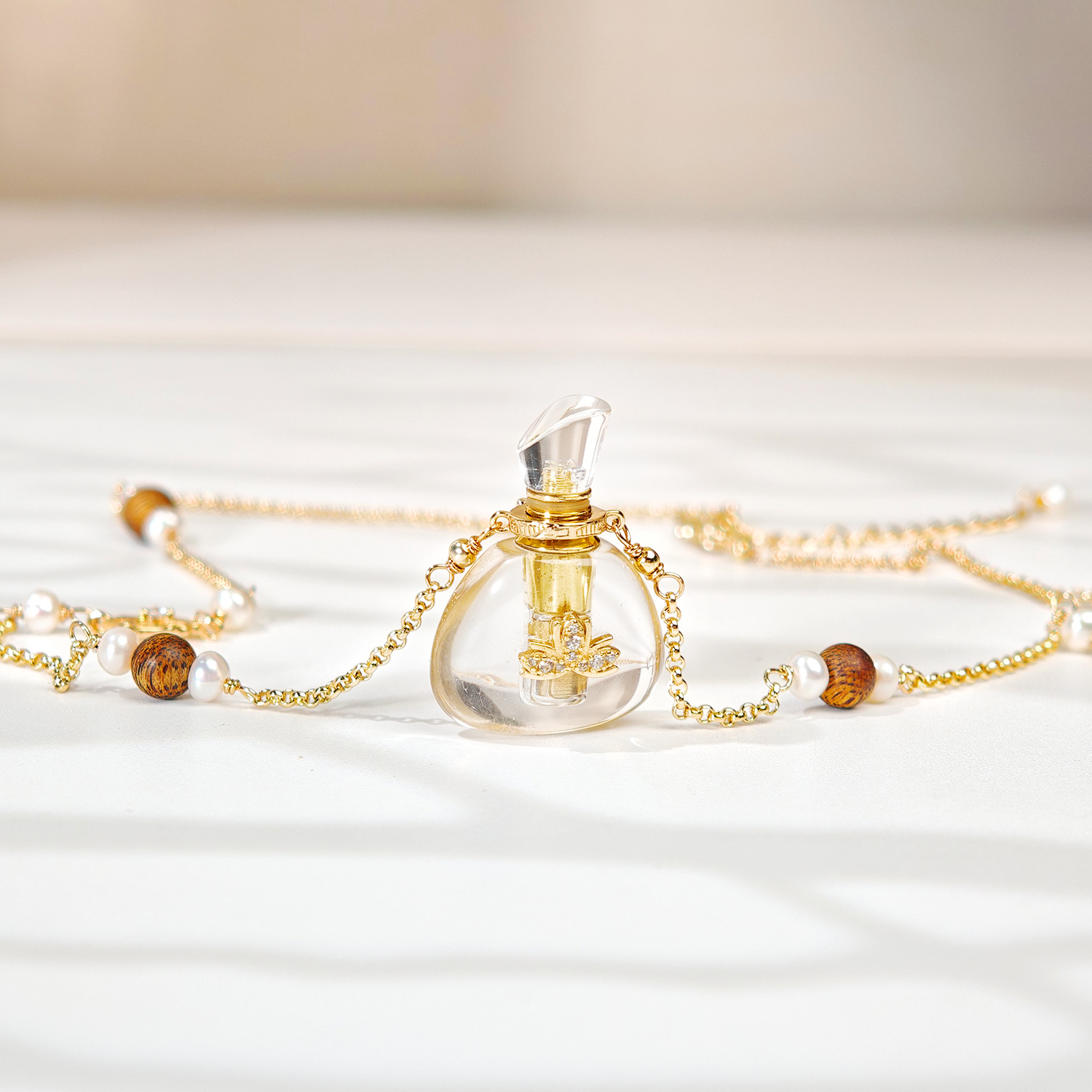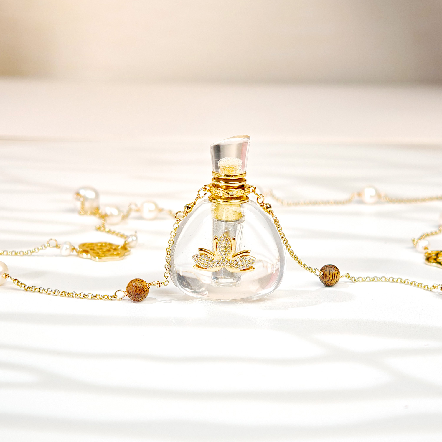 白水晶福袋莲花贴片长毛衣链(中号+小号)