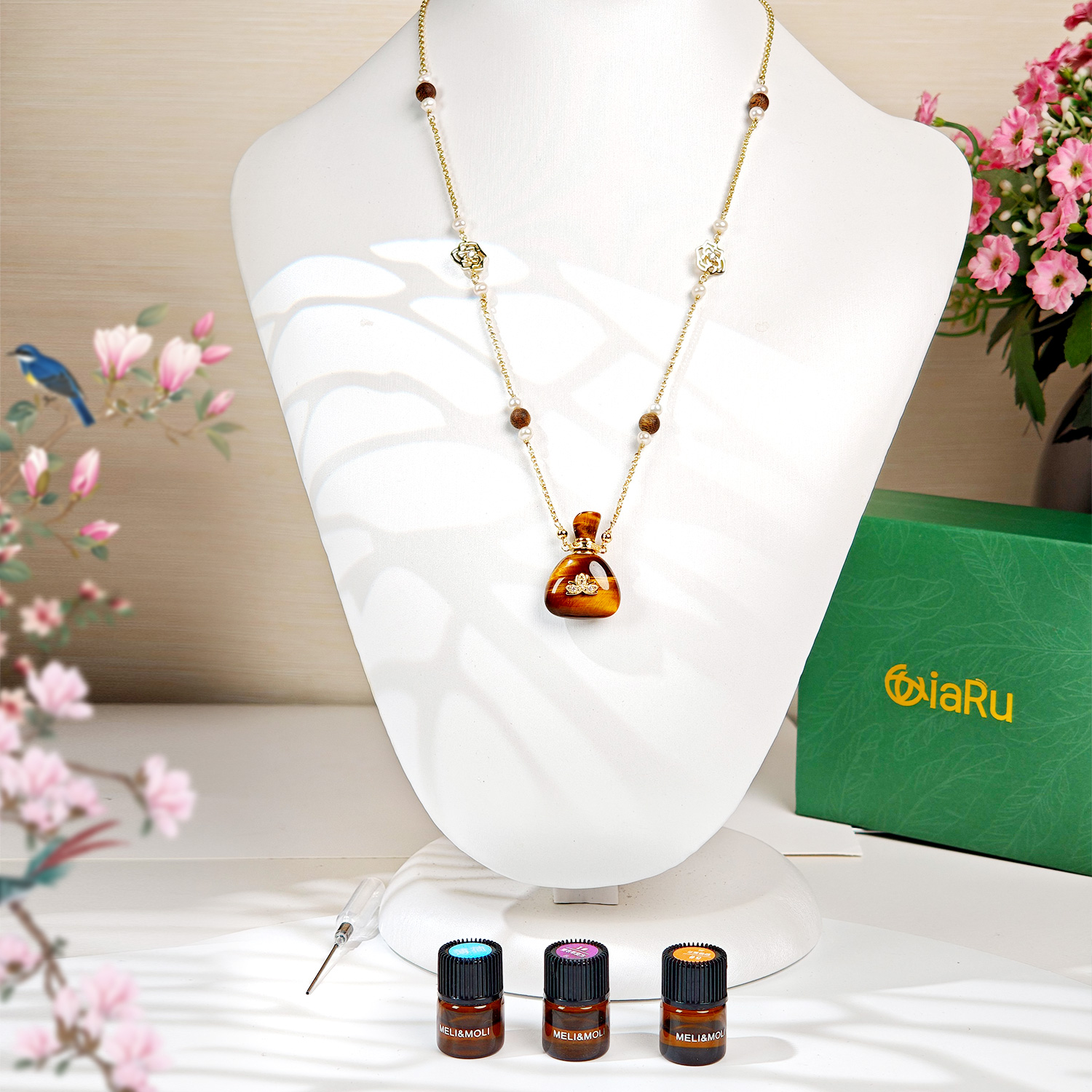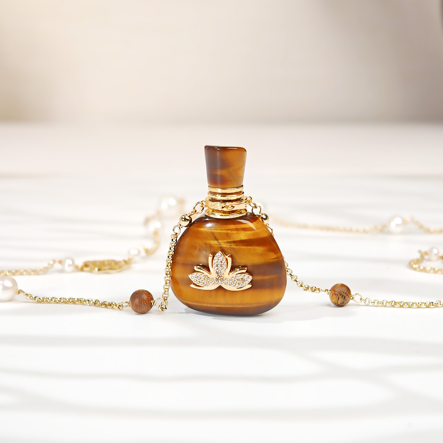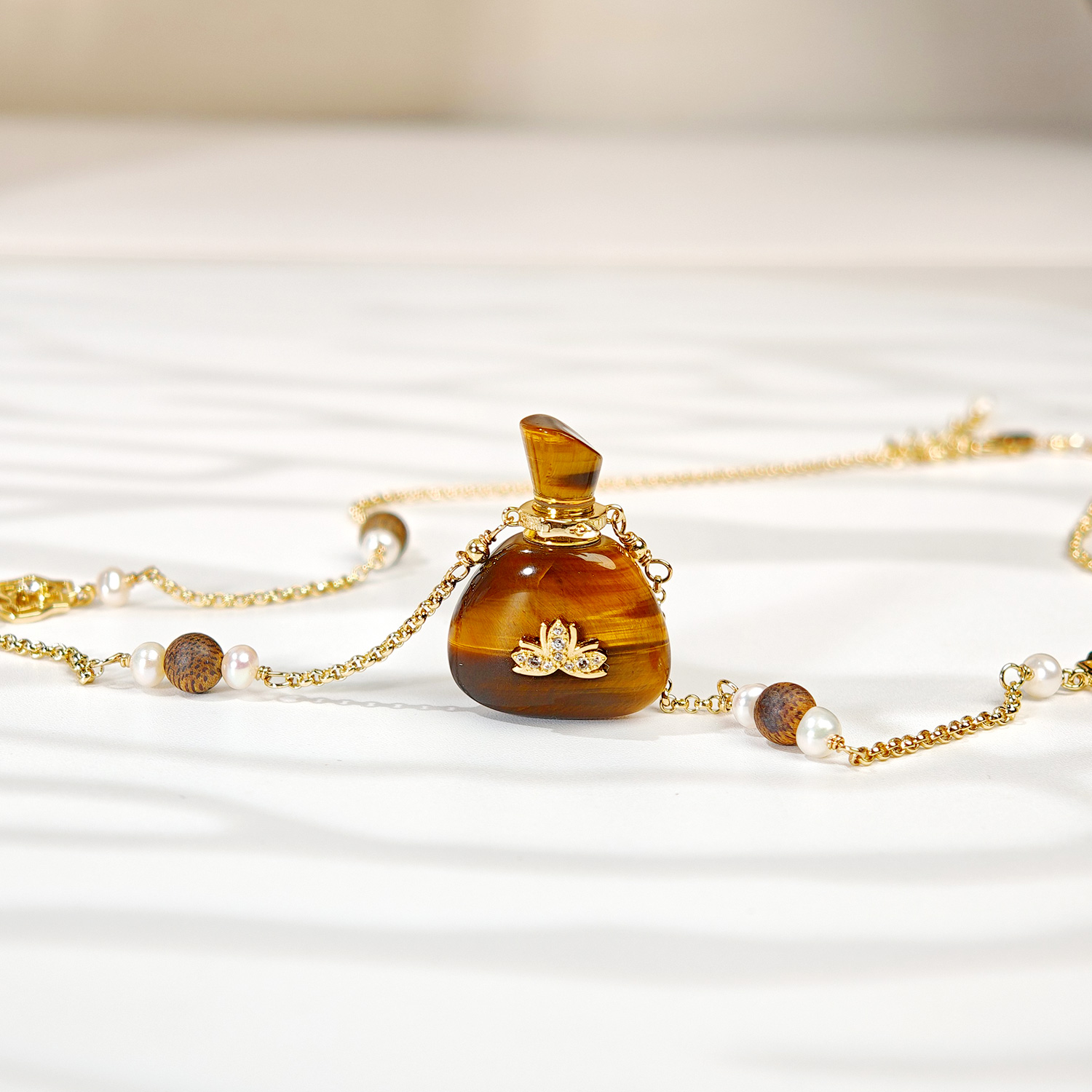 虎眼石福袋莲花贴片长毛衣链(中号+小号)