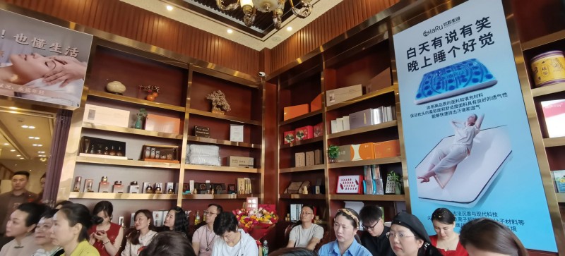 步入生活馆,沉香特有的清雅气息萦绕其间。馆内精心陈列着各类沉香制品:从寓意吉祥的沉香挂件,到天然养肤的沉香护肤品,再到助眠安神的沉香床垫、枕头,每一件都凝聚着匠人的智慧与心血。200余平方米的空间里,传统工艺与现代设计完美融合,打造出一个沉浸式的香道文化体验空间。