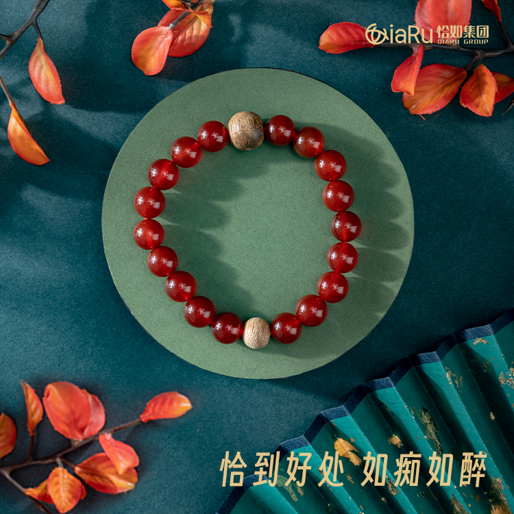 沉香珠/红玛瑙圆珠手串X1