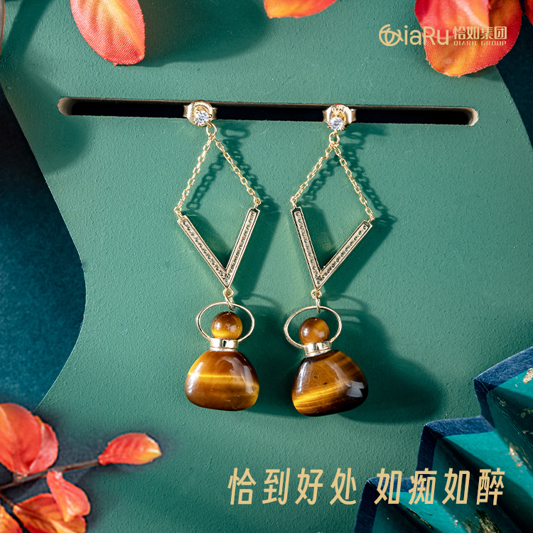 虎眼石迷你福袋耳环X1