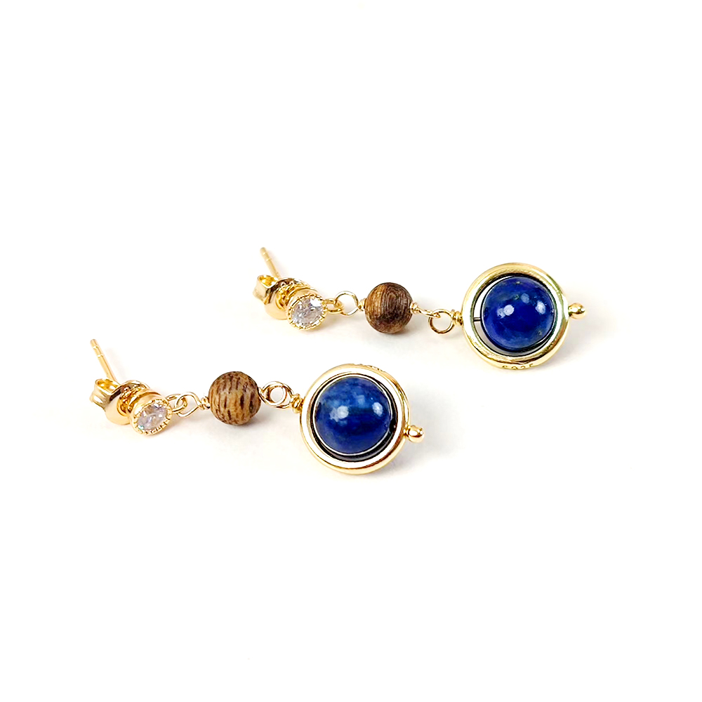 青金石/沉香珠耳环+