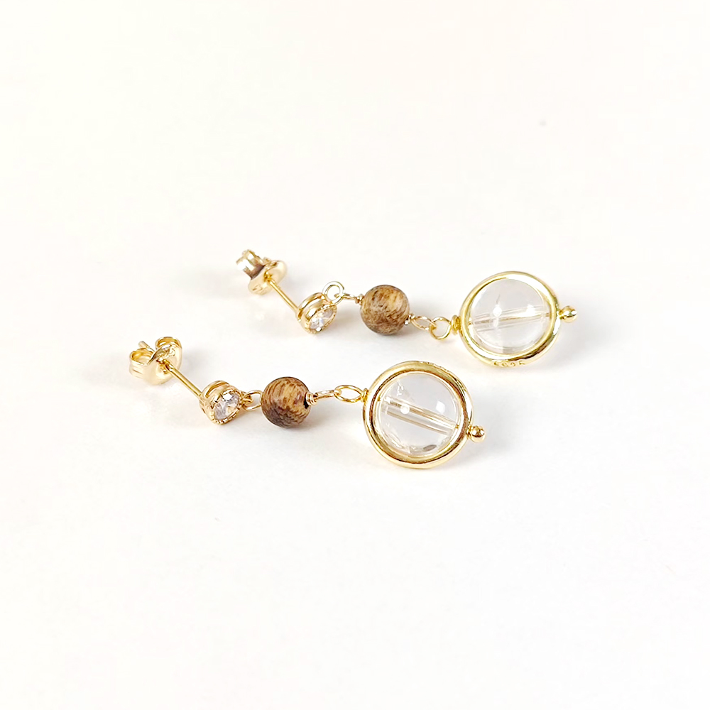 白水晶石/沉香耳环+