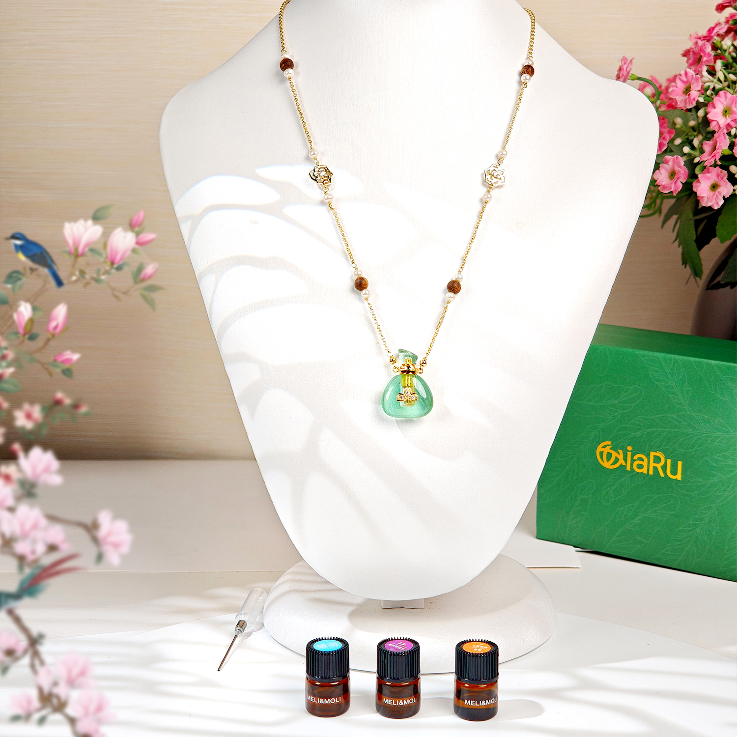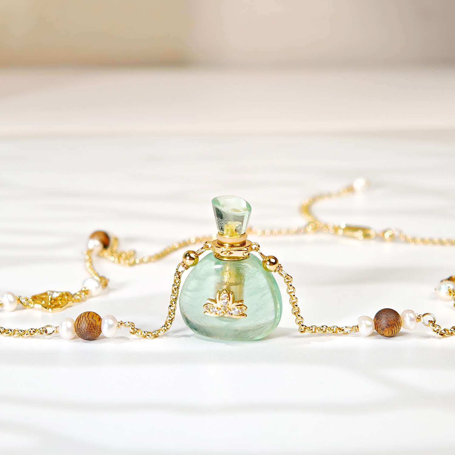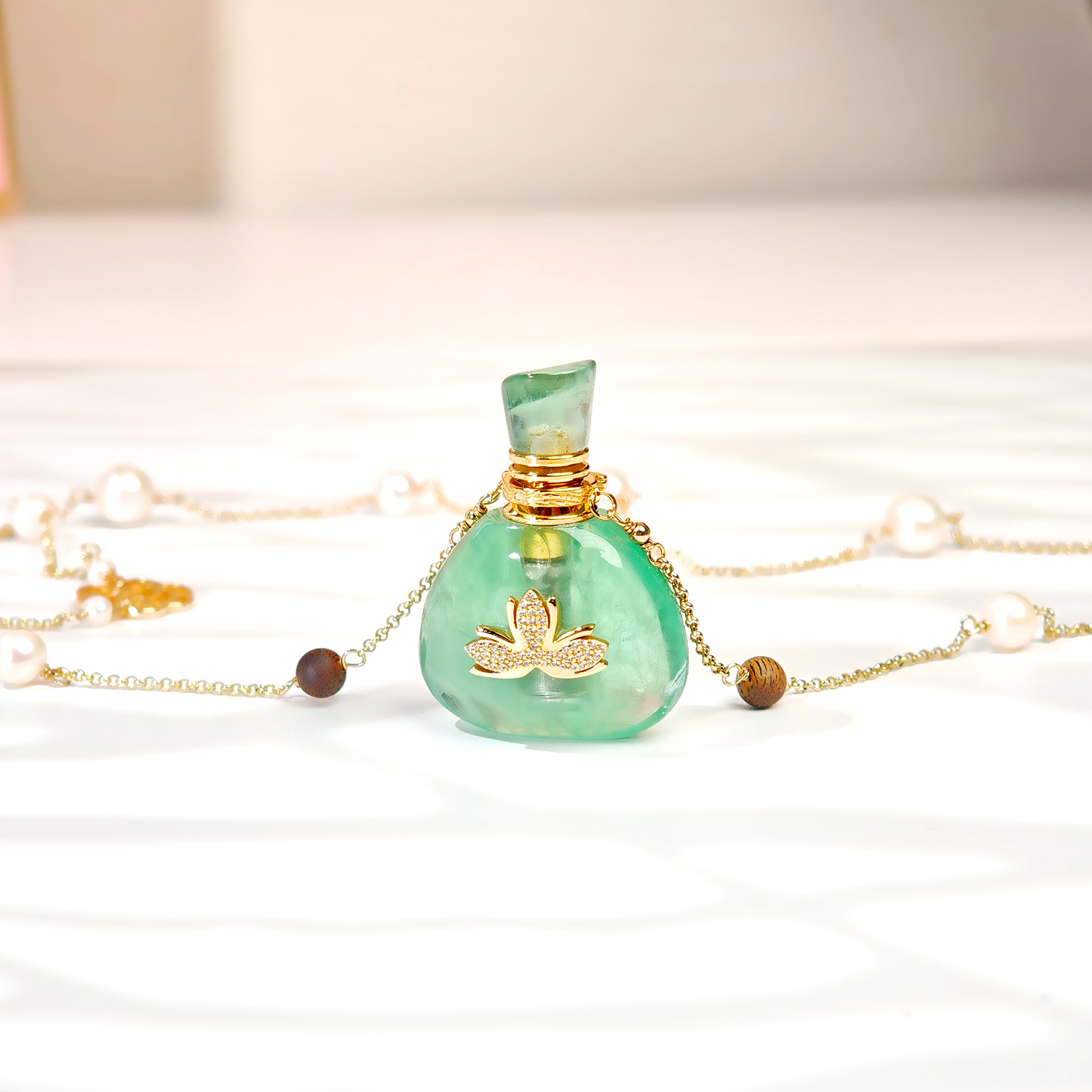 绿萤石福袋莲花贴片长毛衣链(中号+小号)