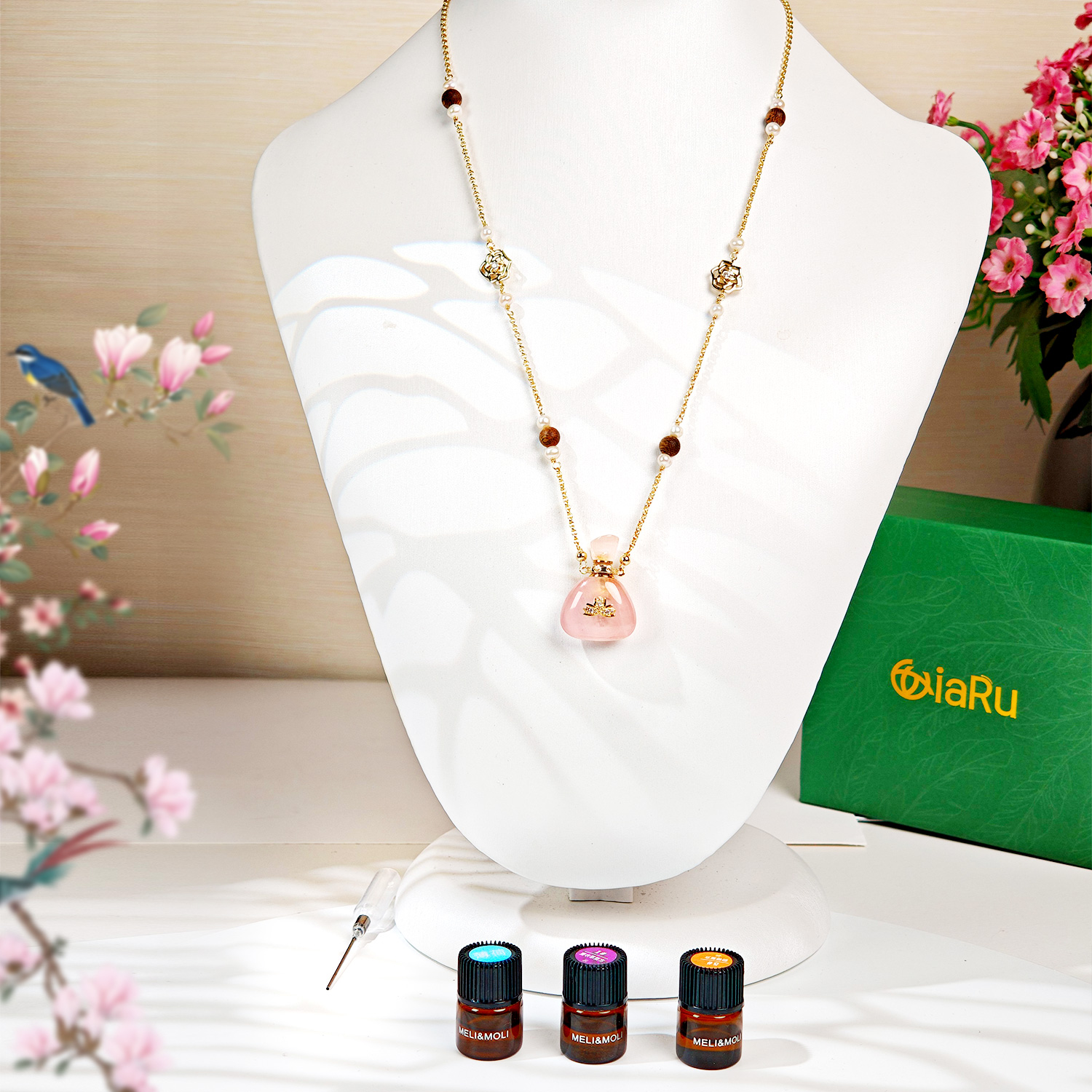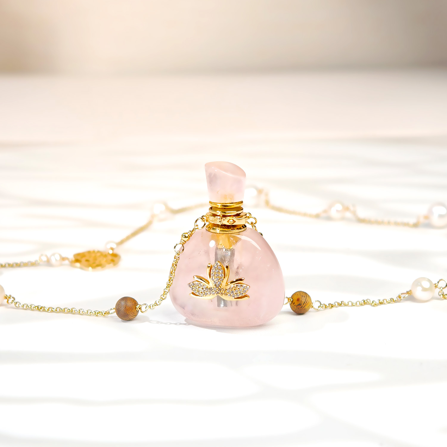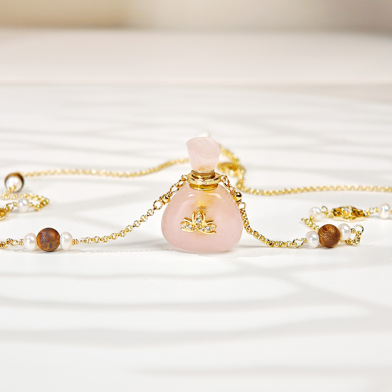 粉水晶福袋莲花贴片长毛衣链(中号+小号)